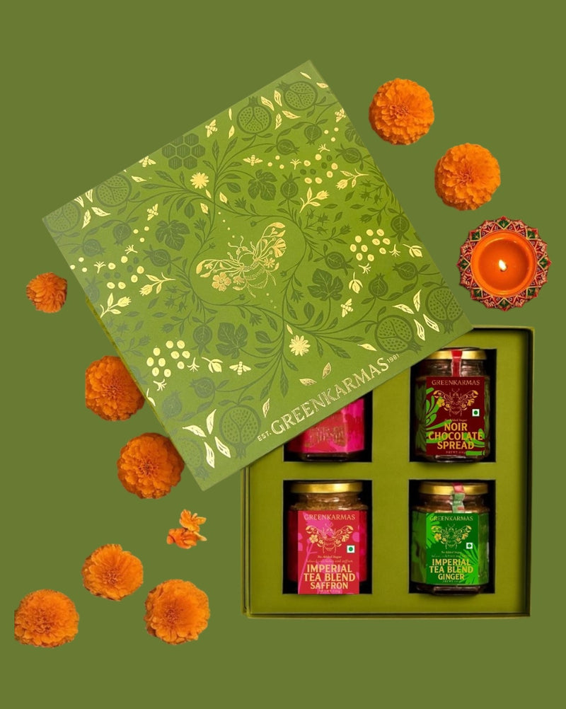 Celebrate the season with the Green & Gold Collection, a limited-edition luxury box that lets you curate four 350 g jars from any of GreenKarmas’ 24 premium products— crafted with no refined sugar, no palm oil, and rooted in conscious living.